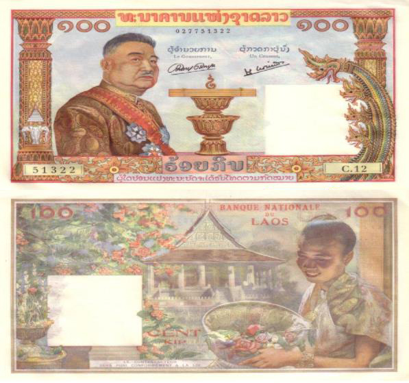 再比如地處東南亞的寮國,其獨立後,仍舊委託法國印製了國內的紙幣,自然也維持了法屬鈔票的風格。如下圖。