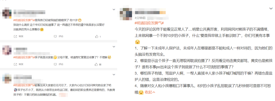 對於此次事件,網友的態度也是兩極分化,有人認為明道所作所為無可厚非,小朋友確實是不太配合,導致拍攝數次中斷浪費了事件。而也有網友認為不能用要求成年人的方式去對待小朋友。