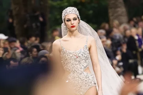 2019年Chanel春夏高階定製秀上,老佛爺更是以她為靈感繆斯設計出了泳衣婚紗,並且點名讓她穿上這身壓軸禮服。