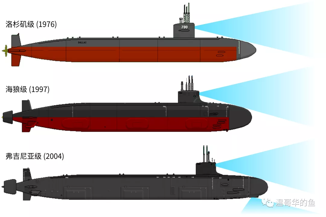 “海狼”級的內部結構從來沒有向外界詳細公開過,網上能找到的唯一一張剖面圖來自美國的《大眾機械》雜誌專題,但這張圖年代久遠,應該是“海狼”級服役之前繪製的,圖上還是常規螺旋槳而不是泵噴,而且魚雷發射管位於艇艏,其準確度也可想而知了。