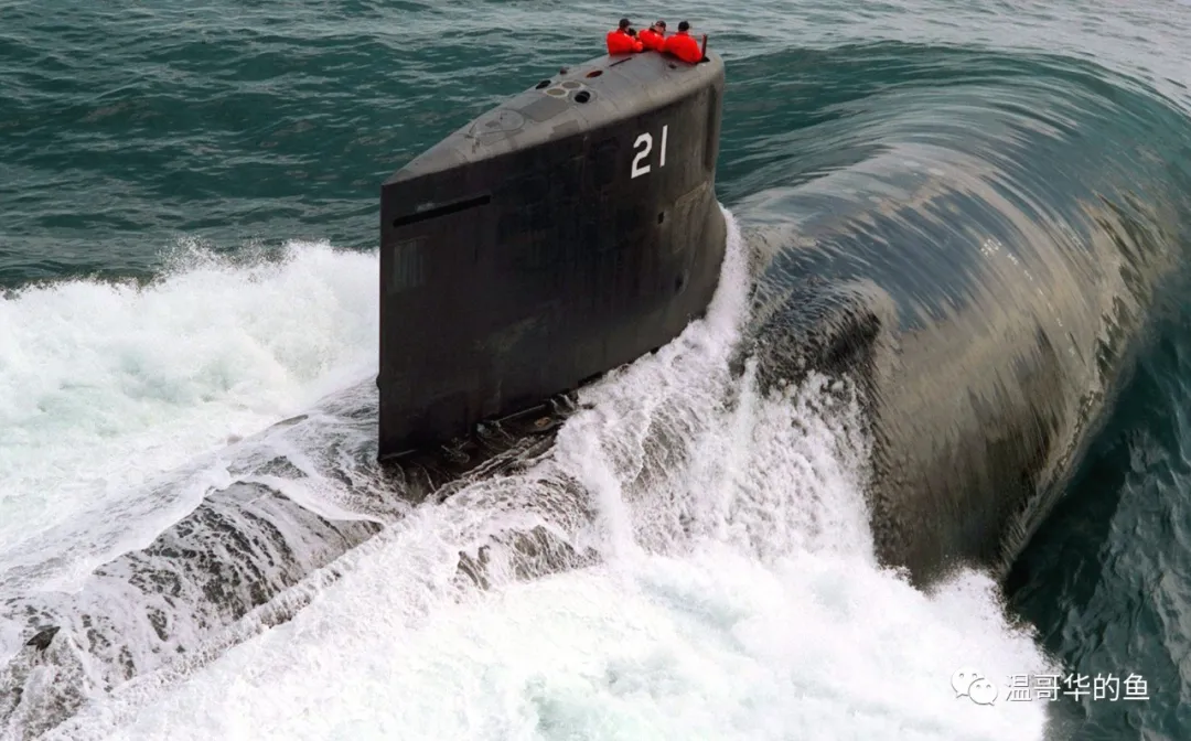 潛艇下潛後進入立體空間,姿態控制比水面艦艇多一個維度要複雜很多。近萬噸的“海狼”級就依靠上述三人的緊密協作在水下進行高速三維運動。找到一張“海狼”號模型在水中的照片以便更好地理解三人的分工和合作。