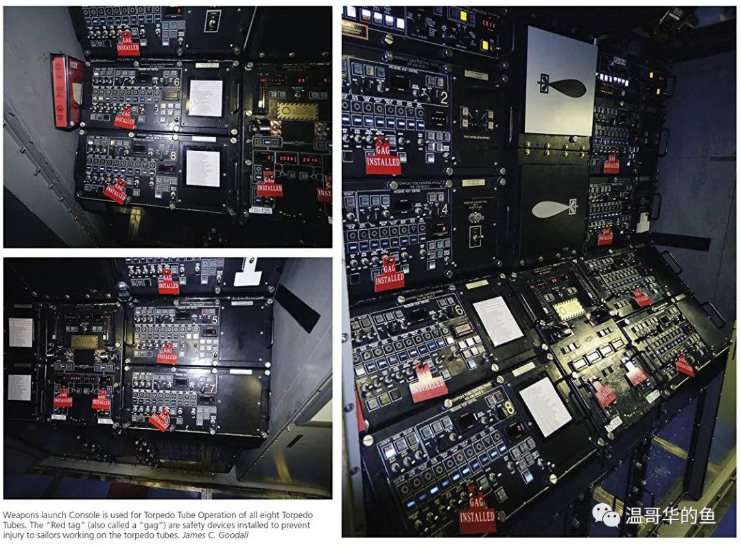 > 難得一見的“海狼”級武器控制面板,紅色的標卡說明相應的魚雷發射管上已經安裝了GAG保護裝置,以避免操作發射管的艇員受傷