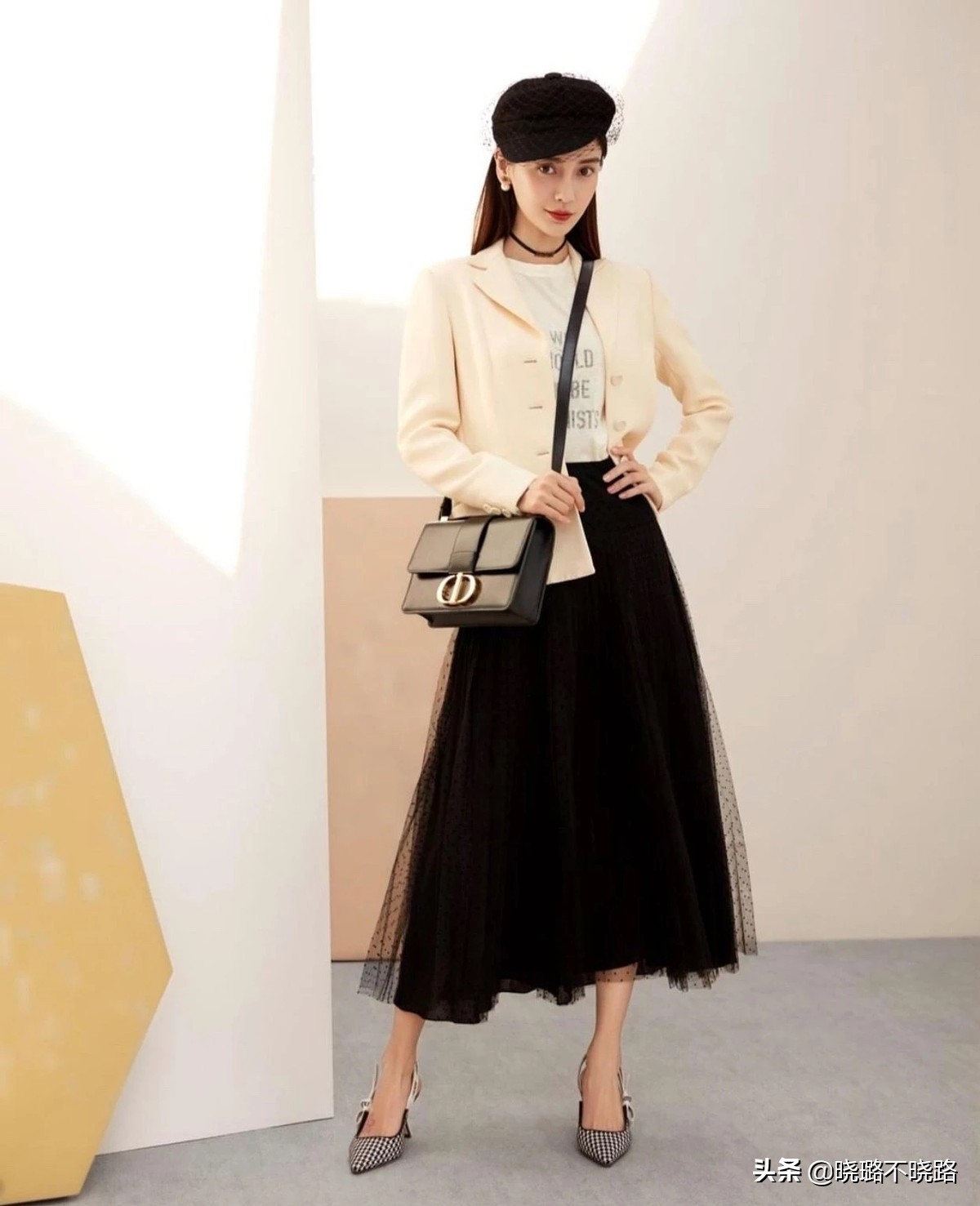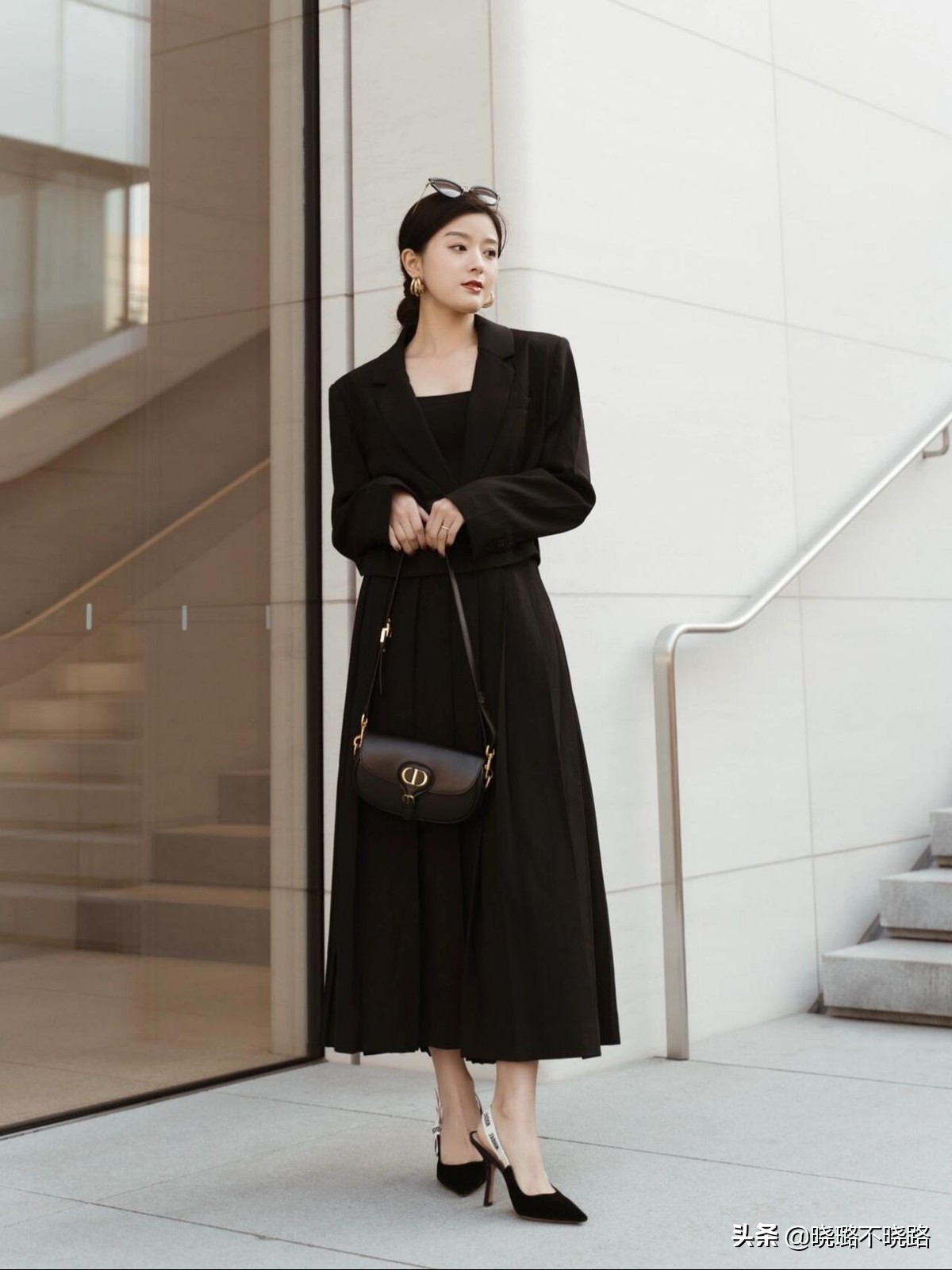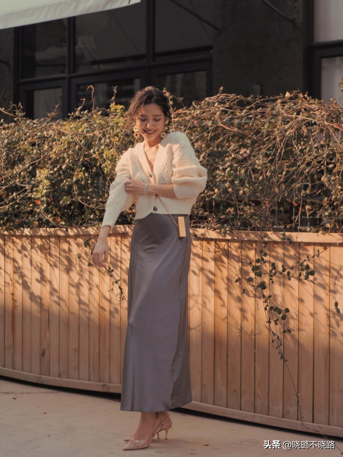 光有垂感還不夠,面料還需要保持有一定的厚度。否則下裝量感太輕,裸跟鞋的量感也不足,會使得下半身的搭配輕飄飄,很奇怪。