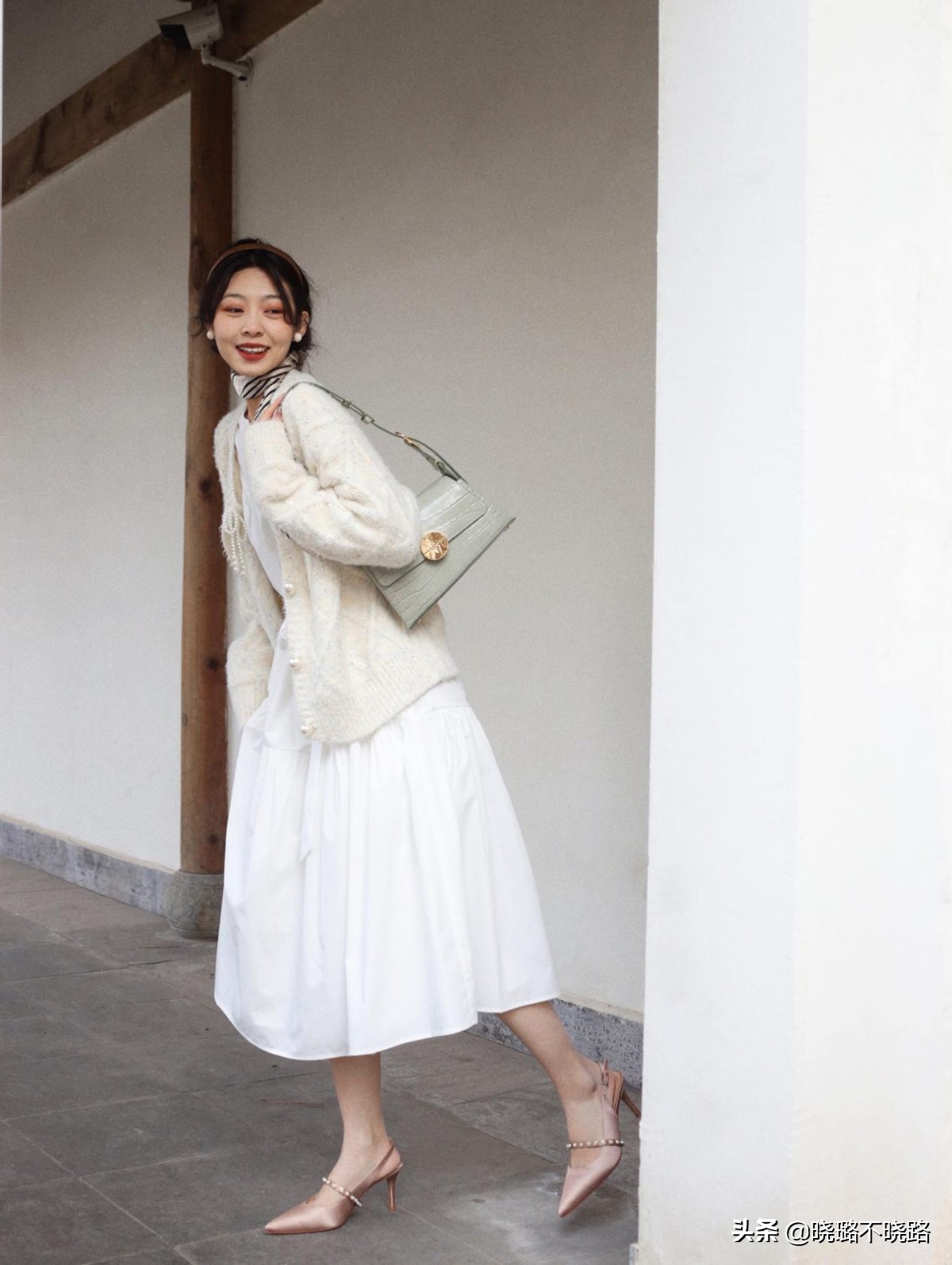 下半身的輕盈感已經如此的明顯了,上半身的穿搭也要儘量輕盈些,才不至於頭重腳輕,失去平衡。