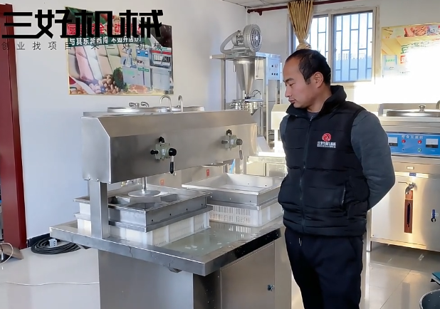 使用豆腐機制作豆腐和傳統手工製作豆腐工序是一樣的,製作豆腐首先需把浸泡好的黃豆進行磨漿,然後在進行豆漿加熱制熟工序,這是製作熟的豆漿加上滷水點制就成為了豆花,如果需要製作豆腐,透過壓制成型即可成型豆腐,所以做豆腐每一道工序都可出不同的製品。
