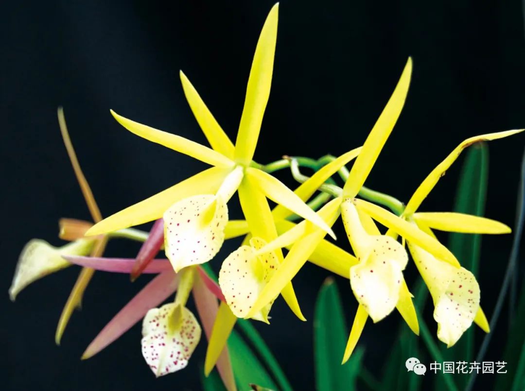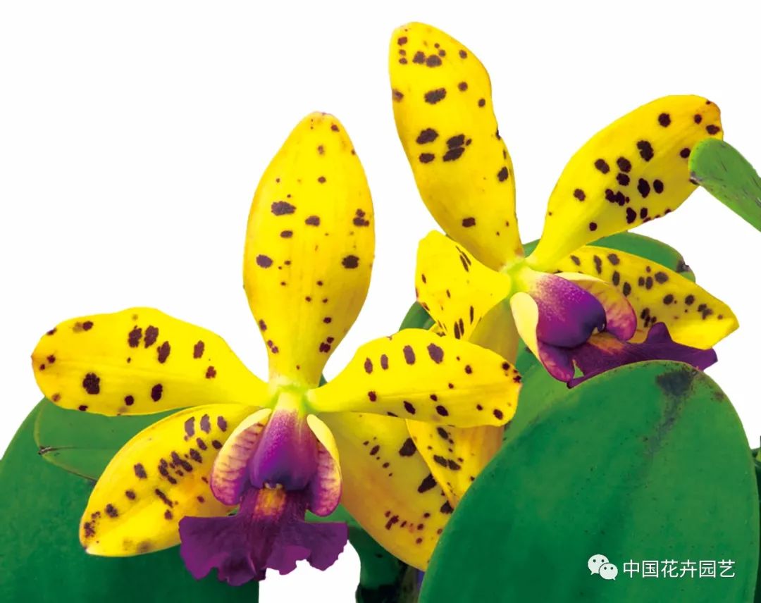 由蕾麗蘭屬×卡特蘭屬雜交而成,大型花,1梗1~2朵,花金黃色,有暗紫褐色斑點,唇瓣青紫紅色,邊緣波狀。花期秋季。