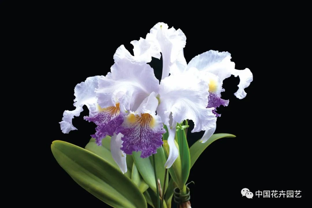 花型飽滿,花色鮮亮,一般在春季開花,花白色,有淺紫脈紋,唇瓣帶有深紫藍色脈紋,喉部斑紋黃色,側瓣邊緣波狀褶皺。該品種適應性強,株高30釐米,花期可達1個月。