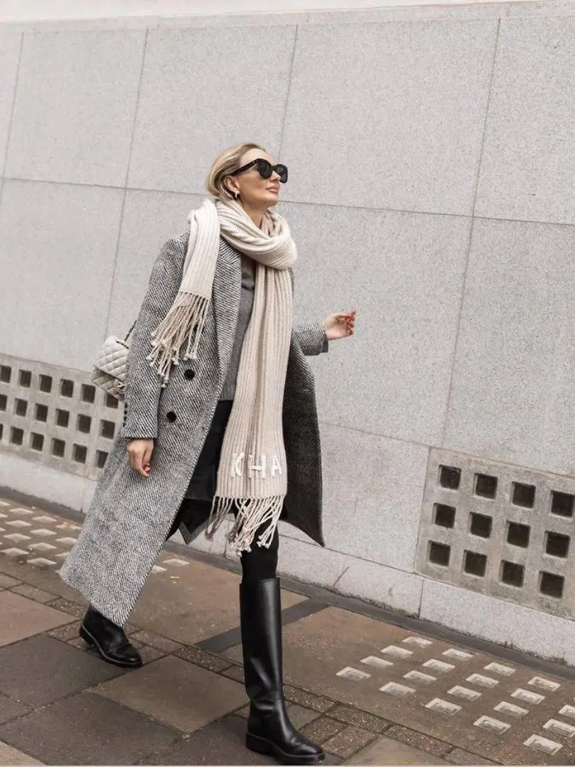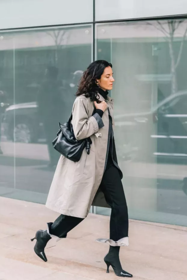 小黑褲+長靴的搭配跟牛仔褲+短靴的造型其實也有異曲同工之妙。▼
