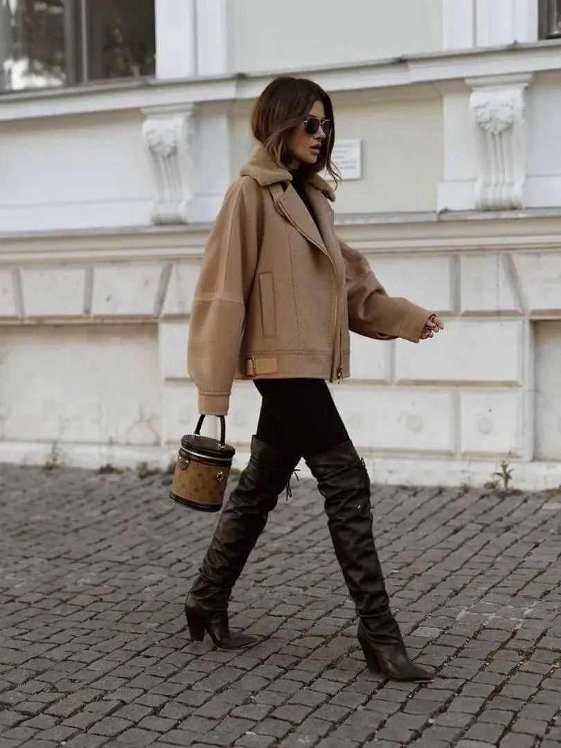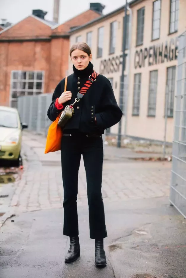 緊身款式的小黑褲+長靴超級帥氣,是實打實的帥氣風格,尤其是搭配一身黑的穿搭,英氣極了。▼