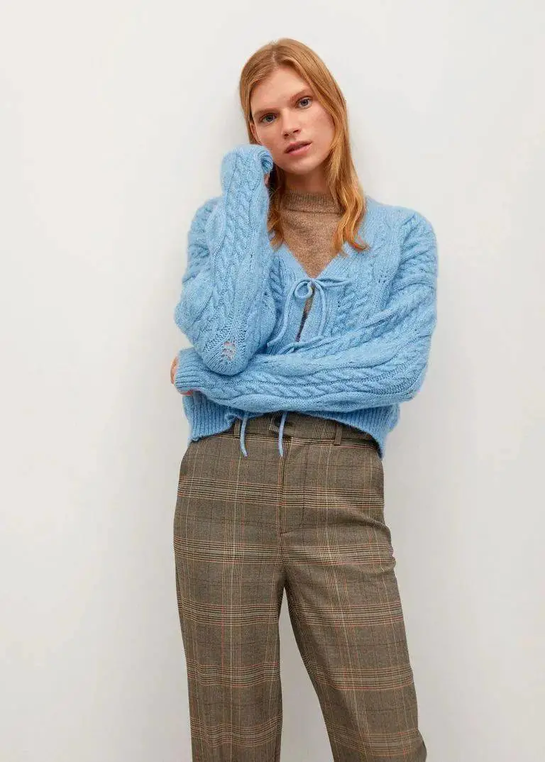 顏色鮮豔的V領毛衣,看起來更減齡,也更加活潑可愛。▼