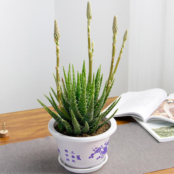 蘆薈堪稱是家庭小醫生,蘆薈擺在家裡當作綠植觀賞效能強,而且葉片的吸附能力也很強,能夠淨化空氣,吸附空氣中的有害氣體,有空氣質量預警的作用。如果空氣質量太差,葉片上會出現黃色的斑點,提醒主人空氣質量不好。