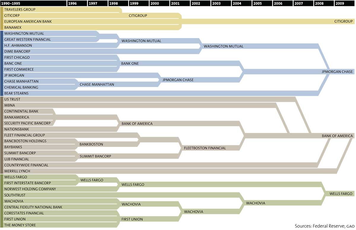 擁有大多數其他銀行的 4 家銀行:富國銀行、美國銀行、摩根大通和花旗集團。