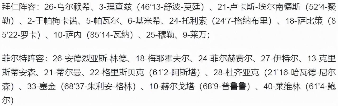 最終,全場比賽結束,拜仁4-1大勝菲爾特。