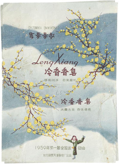 “大量化裝滑冰大會照片流傳至今也能說明當時這項運動有點類似如今的網紅運動。”當時人們對冰雪運動的追捧在李祥的藏品中躍躍欲現,1955年北京市中小學青少年冰上運動大會女十二中樂伊莉參加女子甲組花樣滑冰比賽的照片,甚至被印在信封、香皂海報上,而20世紀50年代的新春賀卡也不乏北京北海白塔滑冰圖案等冰雪運動圖案。