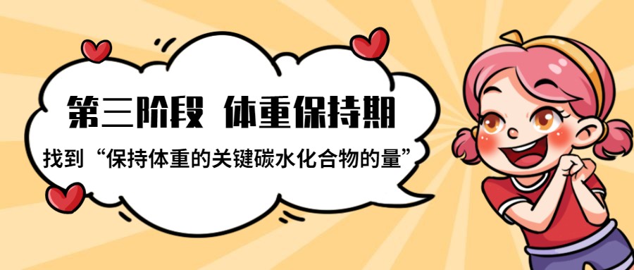 這一階段最關鍵,目的是找到“保持體重的關鍵碳水化合物量”,這就是每天能食用且不會增加體重的碳水化合物的最大數量。目的是讓你的身體記住你的新體重,並調整代謝系統至最佳狀態以適應新體重,利於以後的長久保持。