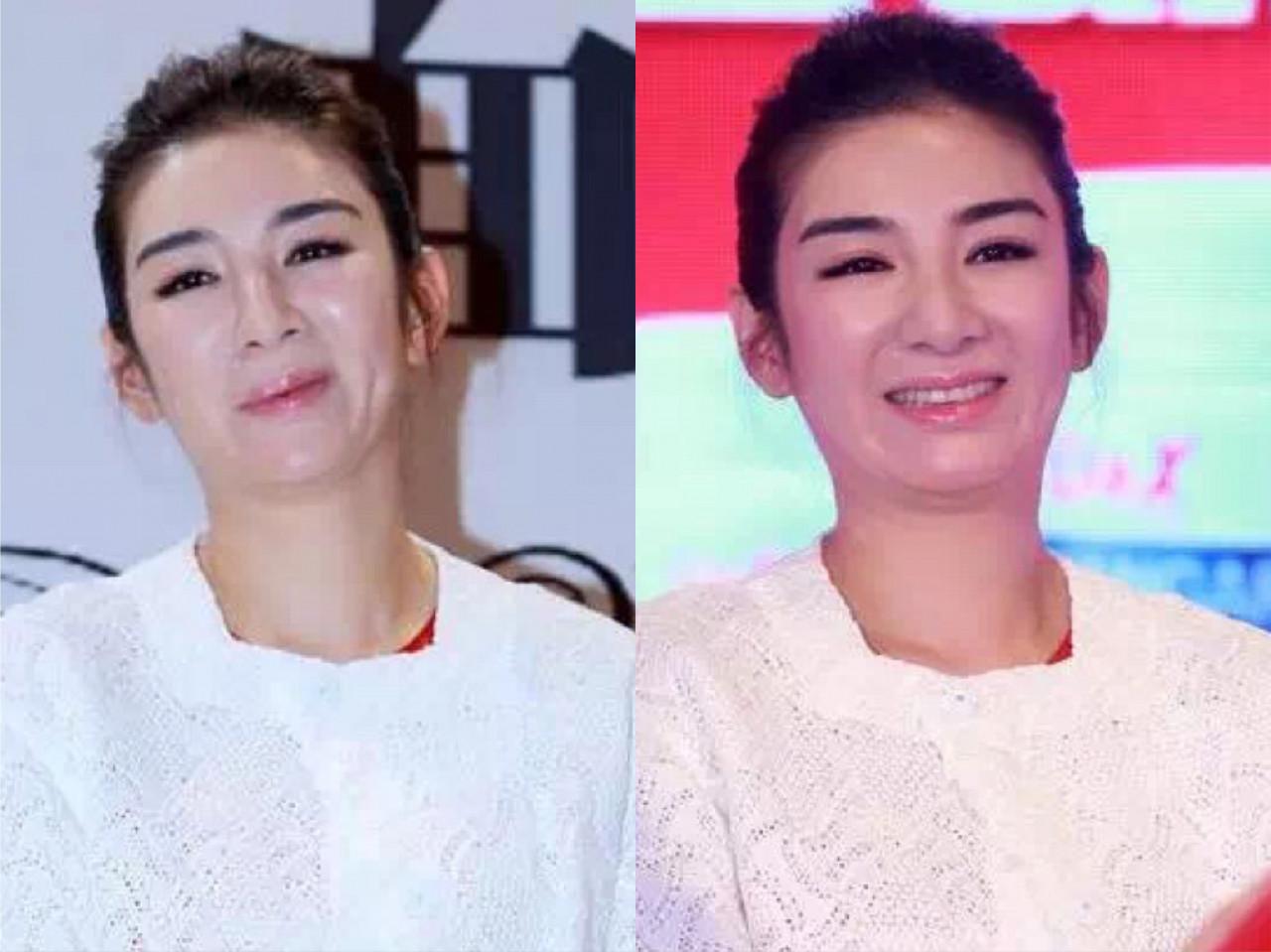 當蔡明淡妝出席時,她的臉就像是個發麵饅頭一樣腫脹,還很僵硬。