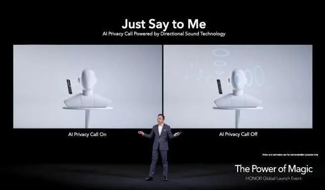 第二塊“長板”是針對通話隱私痛點的解決方案,屬於使用者體驗的範疇。手機聽筒可以看作是一個微小的揚聲器,身處車內、電梯等安靜環境時,難免漏音,洩露通話隱私。榮耀首創雙單元AI分頻安全私密通話技術,像給聽筒加了一層隱形通道,只有機主聽得到。