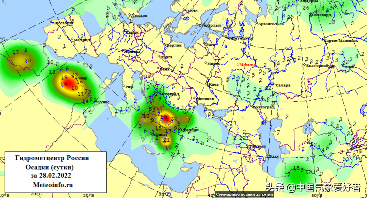 俄羅斯氣象部門的監測資料顯示,在黑海這個強盛風暴系統的作用下,目前黑海沿岸的羅馬尼亞、保加利亞、土耳其等國家和地區已經受其影響出現明顯降水,部分地區還是明顯降雪。