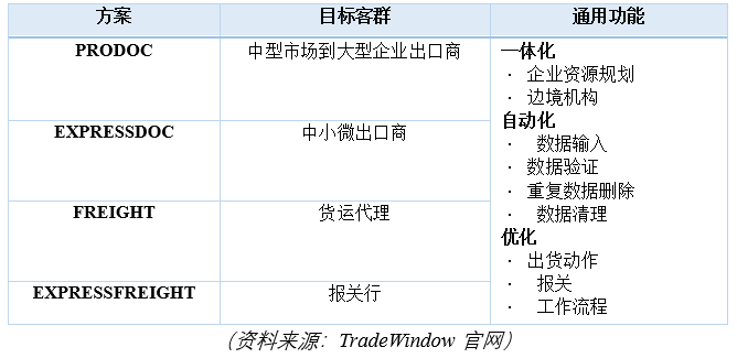TradeWindow生產力解決方案的通用功能包括:1)第三方整合,與企業資源規劃(ERP)系統和邊境機構的無縫連線;2)自動資料輸入,在源頭捕獲資料,並在文件和模組之間同步編輯,避免手動輸入、重複工作和人為錯誤;3)最佳化工作流程,高效的邏輯工作流程以及與整個供應鏈生態系統中主要合作伙伴的互動。