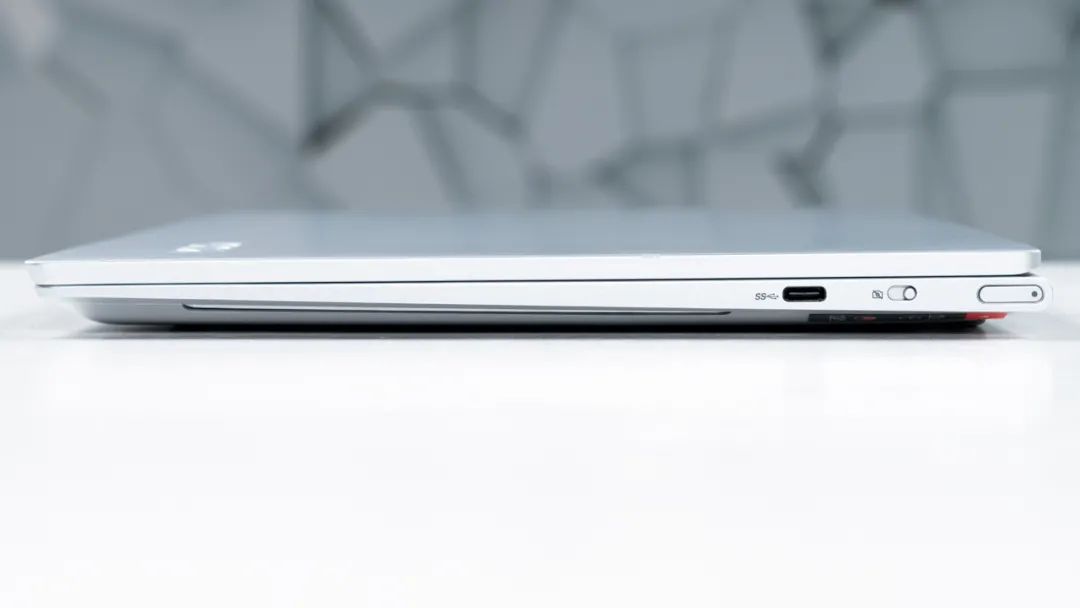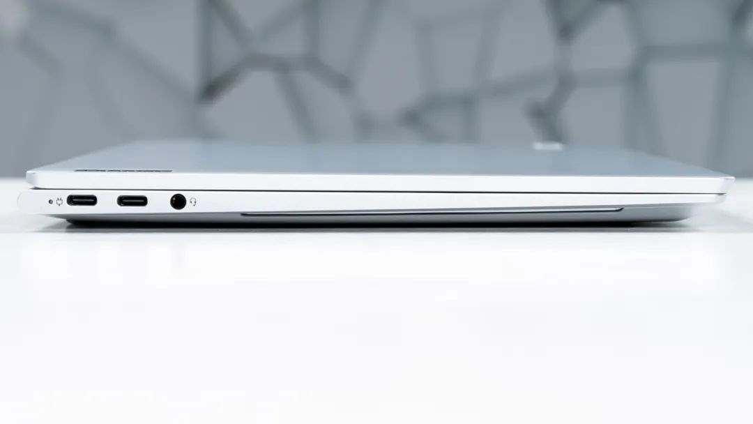 介面方面,它左側有兩個全功能USB Type-C(3.1速率)、3.5mm音訊介面,右側有一個USB Type-C(僅資料傳輸 3.1速率),對於一款14寸的輕薄本而言,介面數量和種類較少。