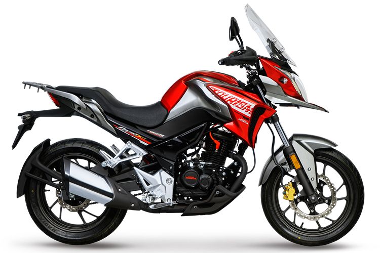新款的五羊本田190X猛鷙在外觀細節有所調整,相較於舊款車型將車把加高了30mm,並帶有兩段手動可調風擋;同事輪胎換成了全地形龜背胎,排氣造型上也新增加了防燙罩。其中摩旅版車型配備有鋁合金三箱、不鏽鋼護槓、車把護手;行李箱邊箱容積為32升,尾箱容積為40升,採用鋁合金材質並配有反光條。