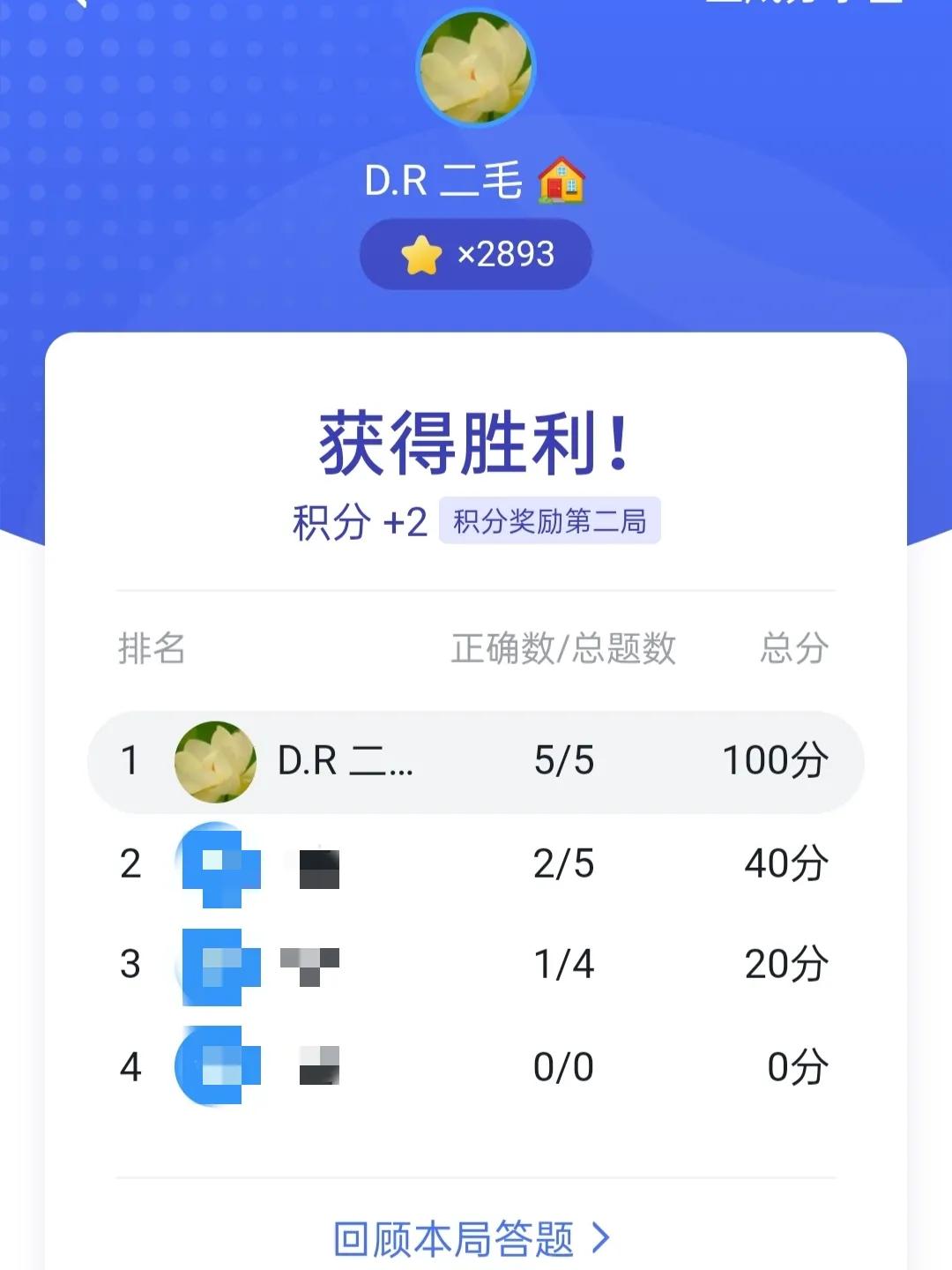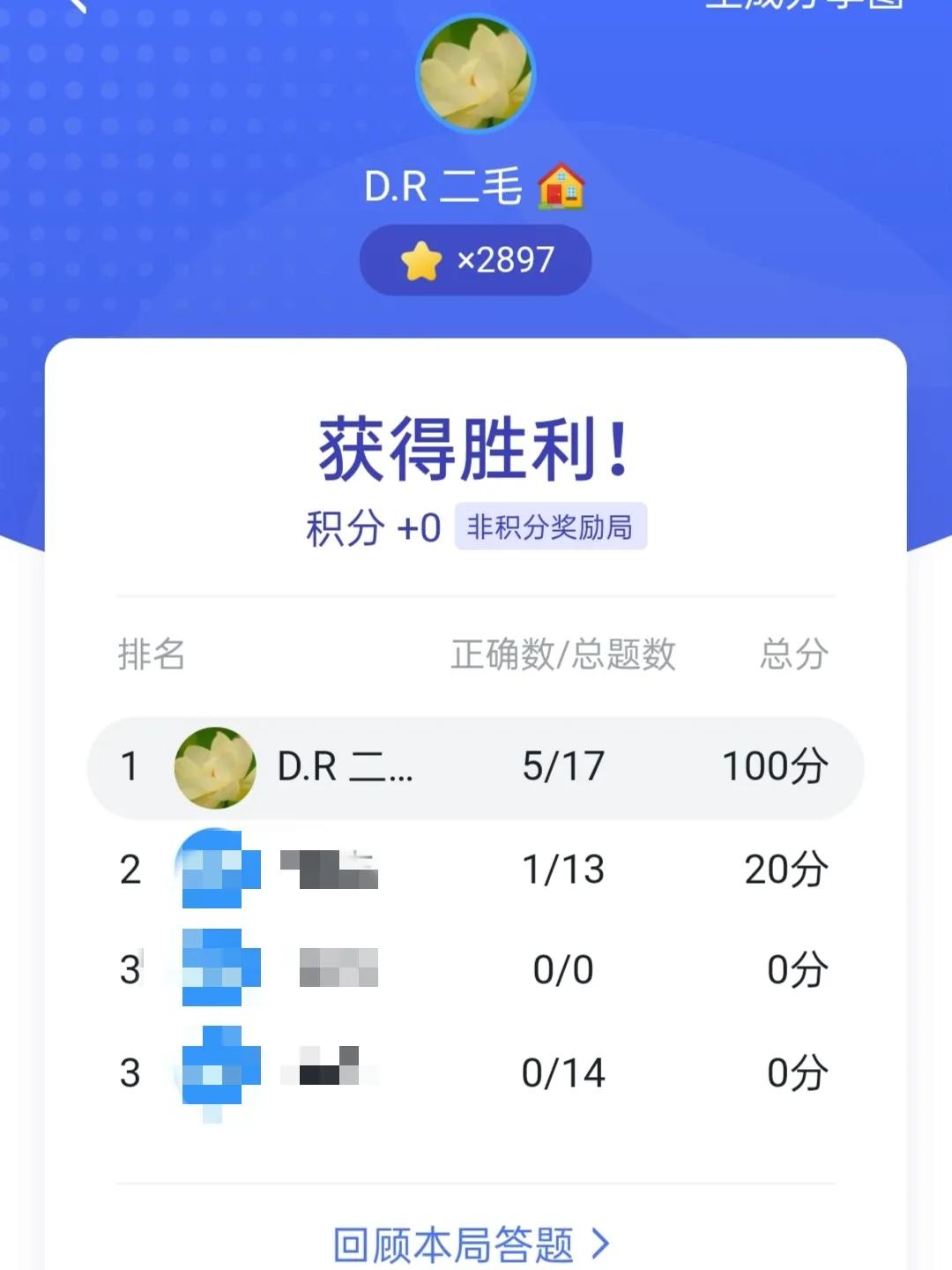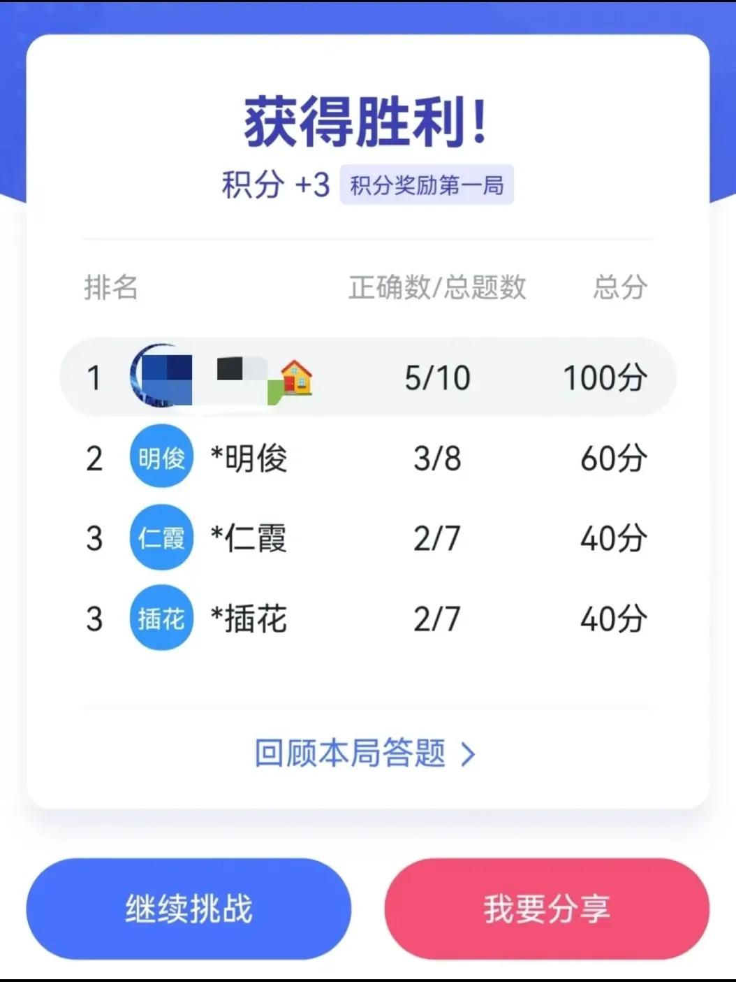 圖3是達人群一位資深大神的積分截圖,你看人家,在積分局盡然能夠控速答到10題,依然取勝,這樣的事,估計只有大神敢做吧,因為他們成竹在胸。