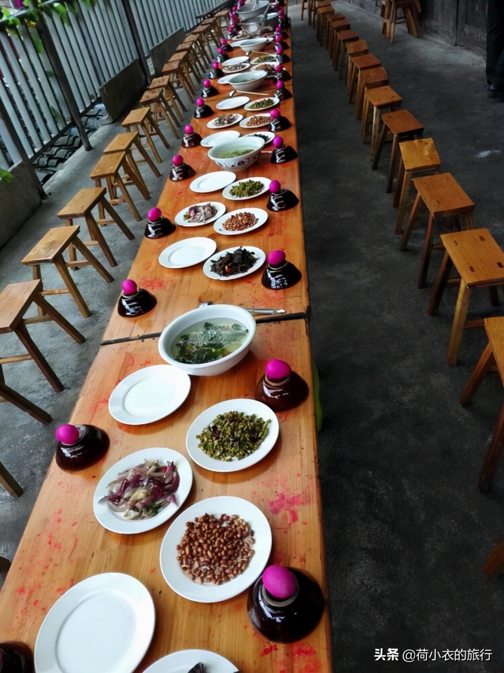 3、到了九黎城,建議吃吃苗家特色長桌宴,體驗苗族的飲食文化。