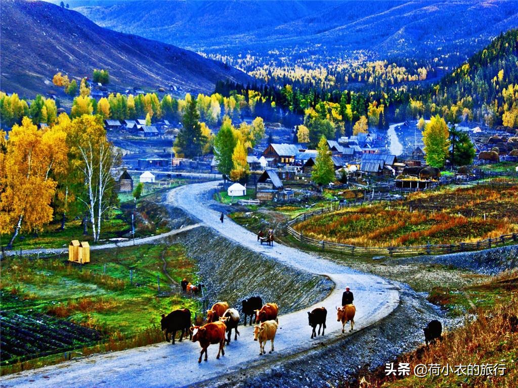 白哈巴村的秋天是最美的,季節的轉換,將這裡的白樺樹葉染成火紅色,給楊樹披上一件金黃色的衣裳,還有那被皚皚白雪覆蓋的高山和廣闊無邊的天空,把白哈巴村點綴得無比的美麗。