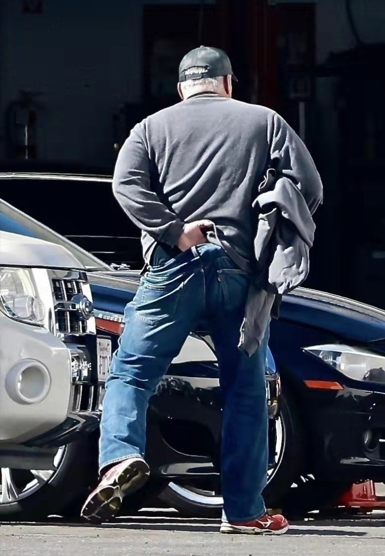 他穿著簡單的T恤和牛仔褲,挺著自己的大號啤酒肚在街上轉悠,完全沒有明星的樣子。