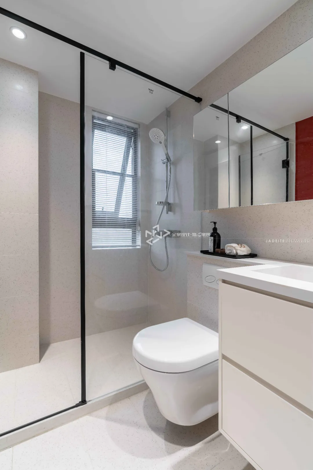 衛生間做出乾溼分離使馬桶淋浴空間變大寬敞,大理石加壁龕,以最簡單的狀態滿足生活需求。