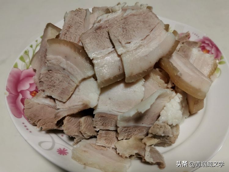 將煮好的五花肉切成薄片。