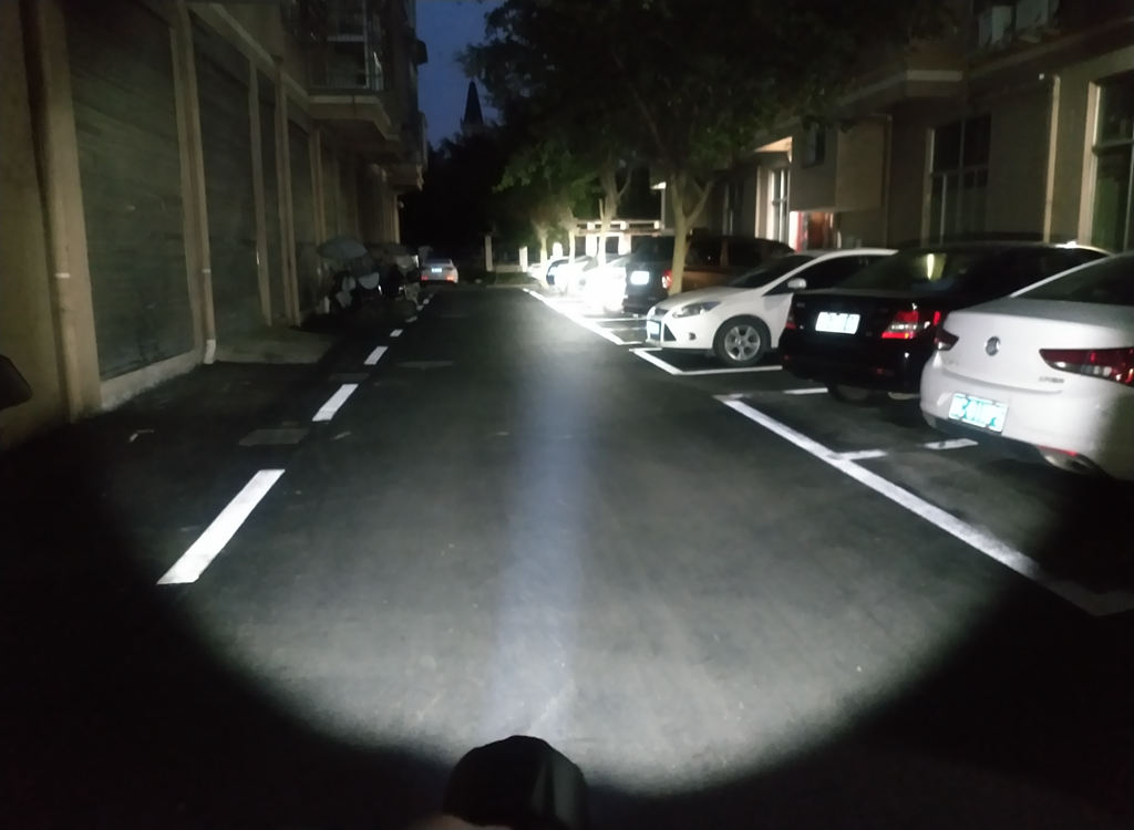 對牆體照射,其聚光遠射的效能是明顯的。中央位置極亮。外圈則也能大面積的覆蓋。這樣可以理解成其具有遠射和較大角度照射的相容。