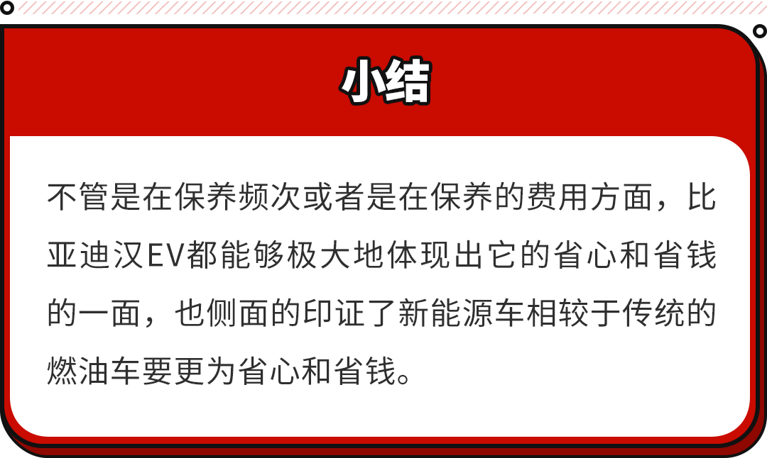 更重要的是,由於比亞迪 漢EV是電動車的緣故,並不會像燃油車那樣定期需要對發動機進行油液或機濾的更換,每一次的基礎保養僅包括VDS掃描及程式更新、高壓元器件檢查、各種油液位檢查、電池包及底盤檢查等等,算上工時費也僅為130元左右。