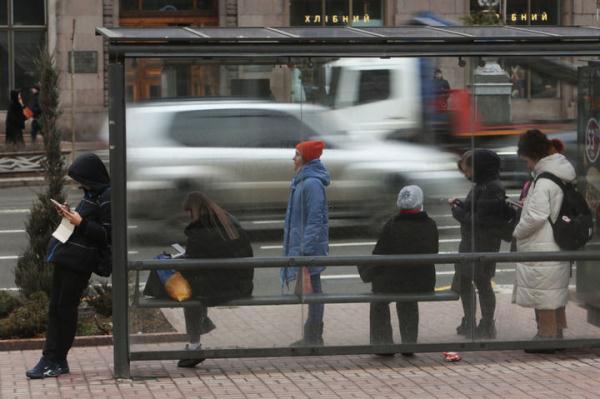 2月10日,市民在烏克蘭基輔一處公交站等車。新華社發(謝爾蓋·斯塔拉斯堅科攝)