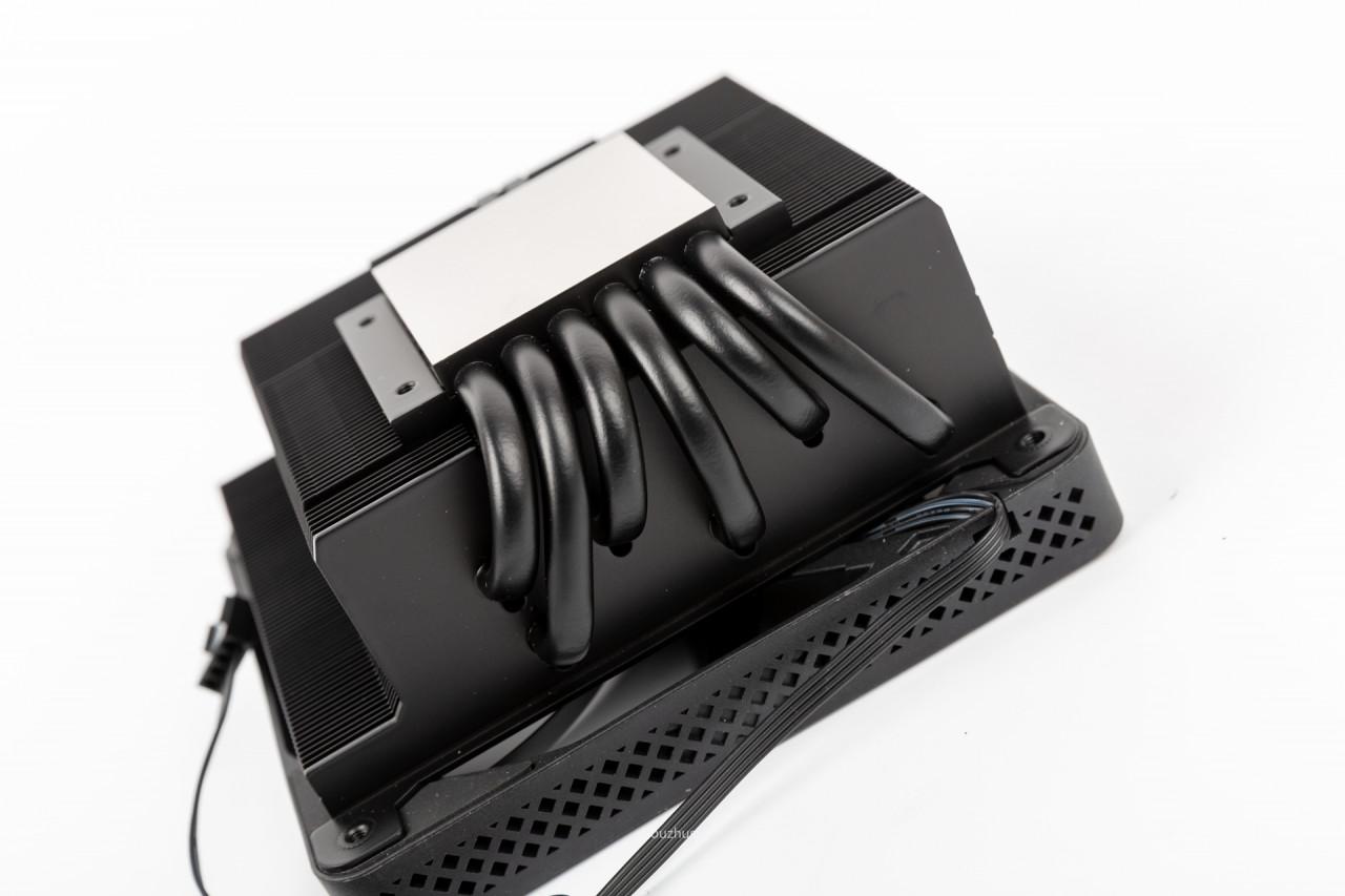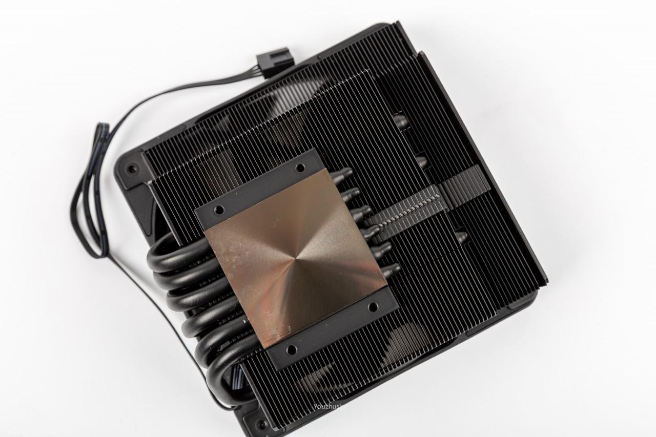 六根6mm的熱管採用迴流焊工藝,下壓式散熱為了照顧相容性和散熱效能才用兩邊雙高度的鰭片