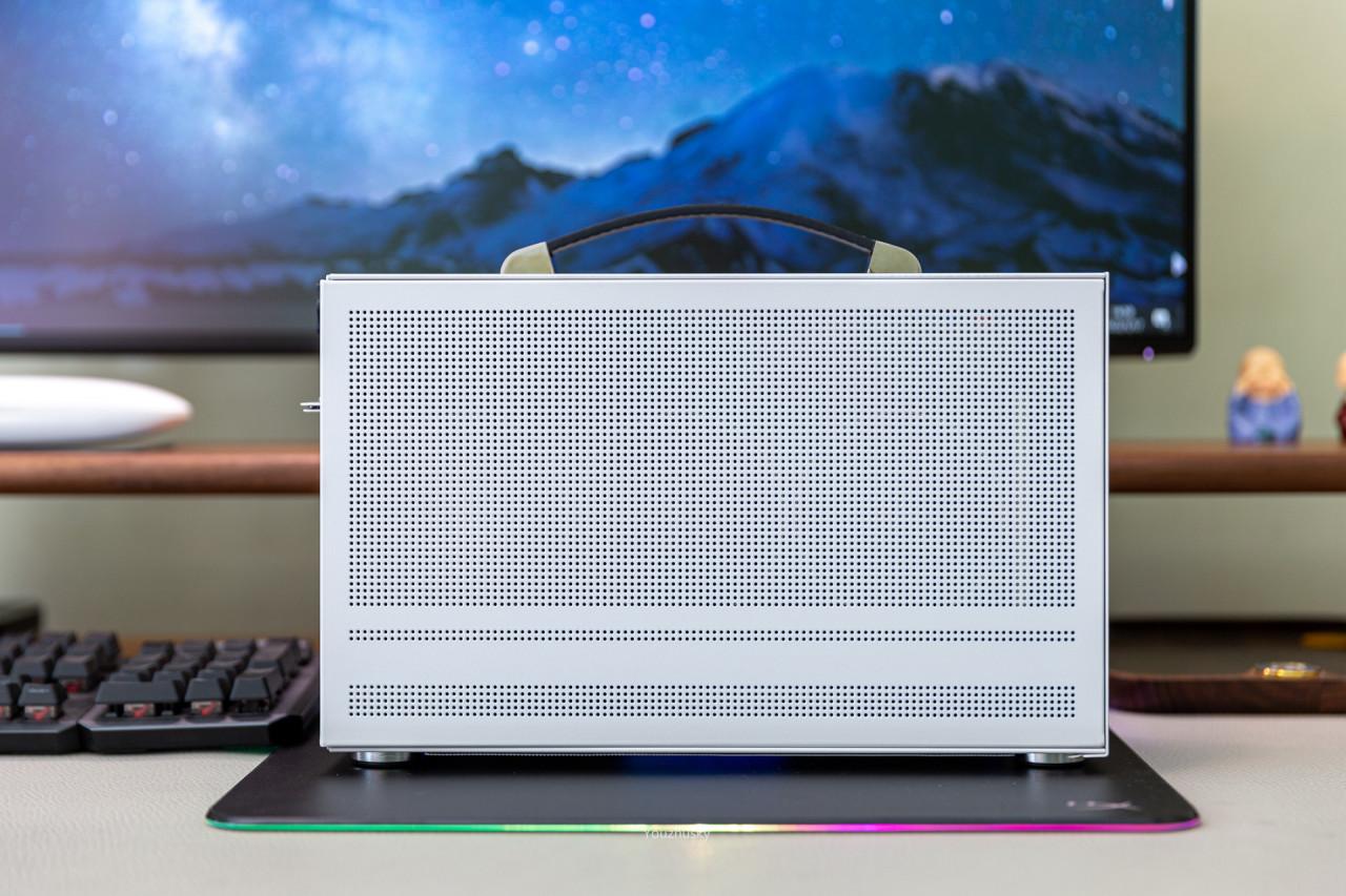 主機的頂部,皮質提手和前置IO開機鍵、一個USB3.0和一個TYPE-C