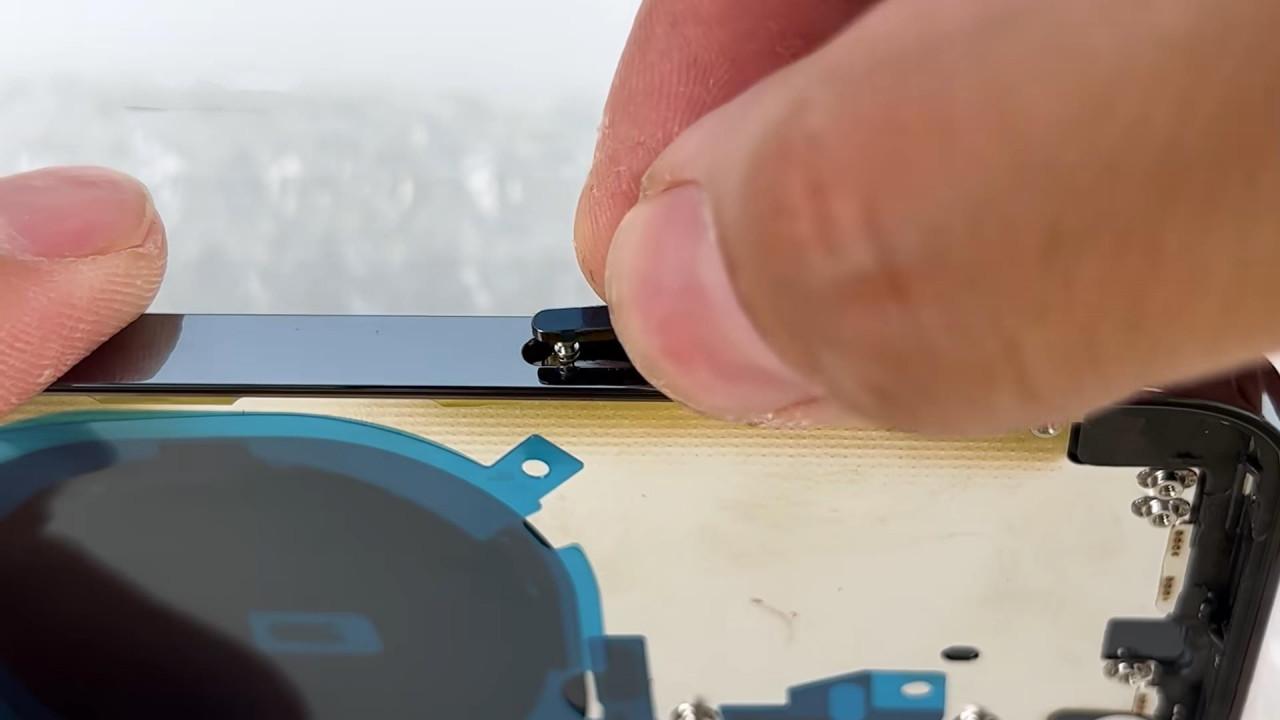 iPhoneXSMax的所有元器件已經在機身內部已經全部安裝完畢,新購買的手機螢幕也與主機板連線上了,隨後的工作就是測試一下能否正常開機和工作。
