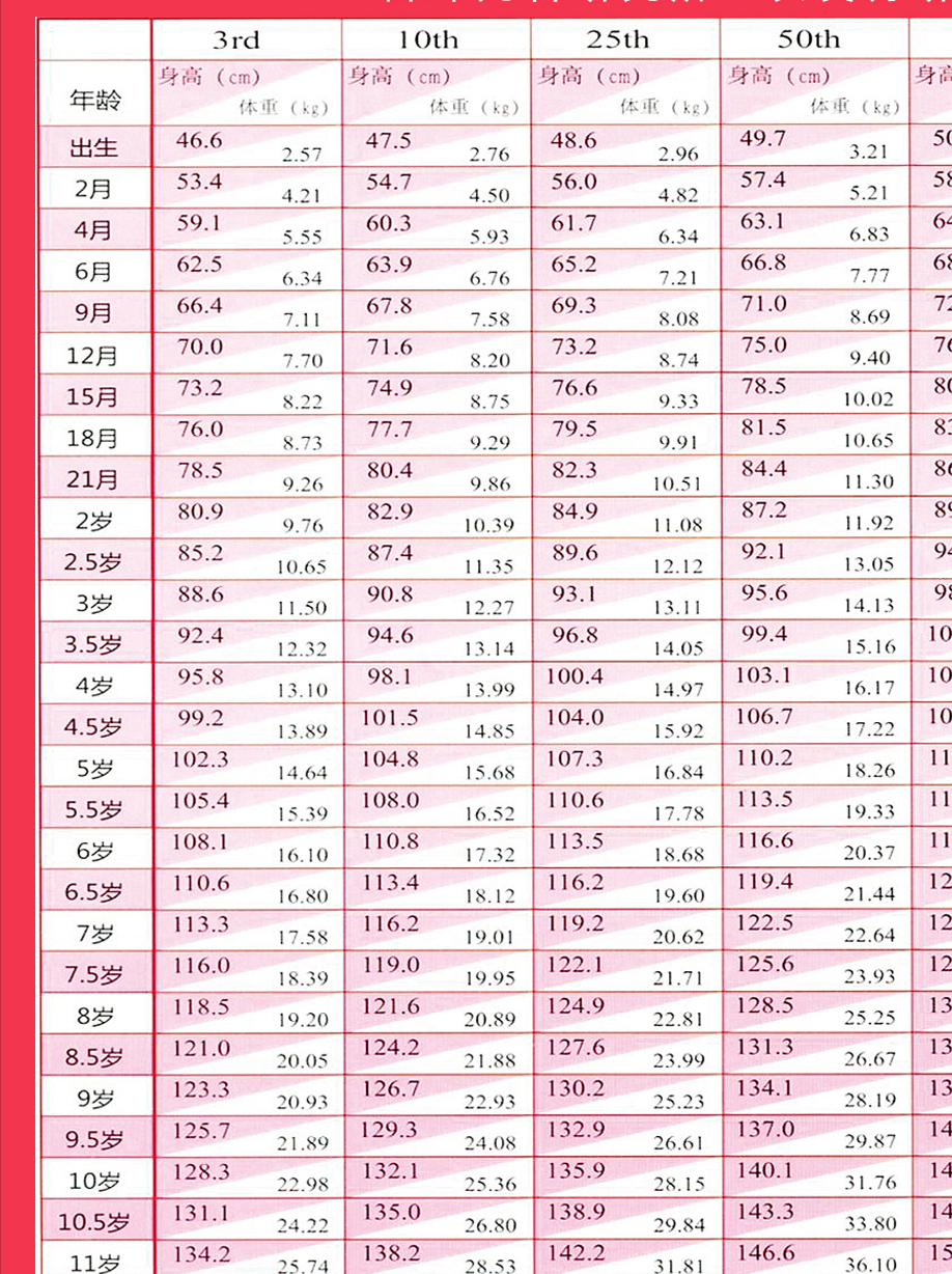 3歲-青春期前:每3個月至少1.5-2釐米,1年長5-7公分,低於5的提示生長有問題。