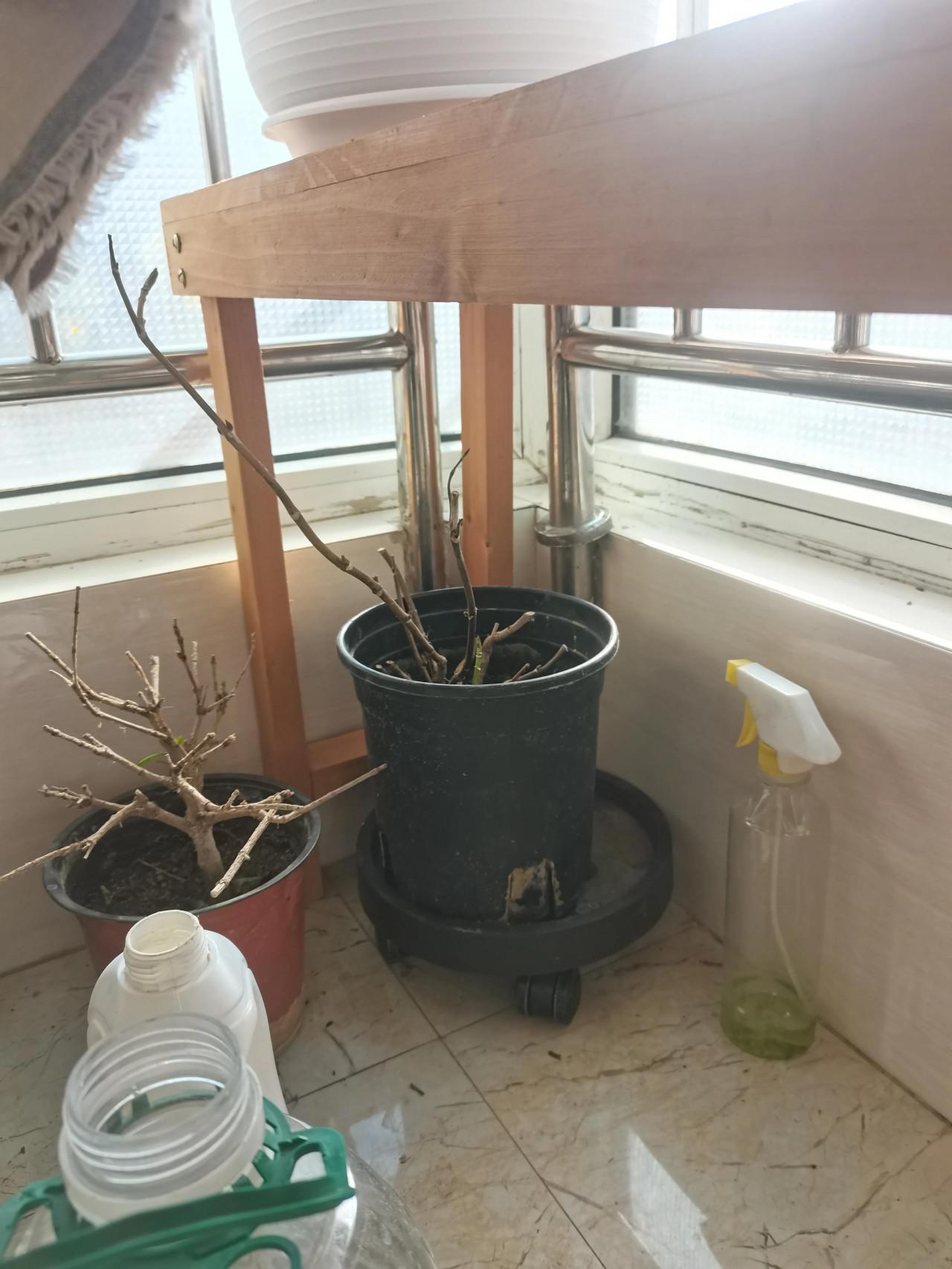 但好日子不長,漸漸的都憔悴了,到了冬天,有一盆徹底枯萎了,還有一盆僅剩下兩個小小的芽,枝條上的芽孢乾癟了,肯定是根系出了問題。