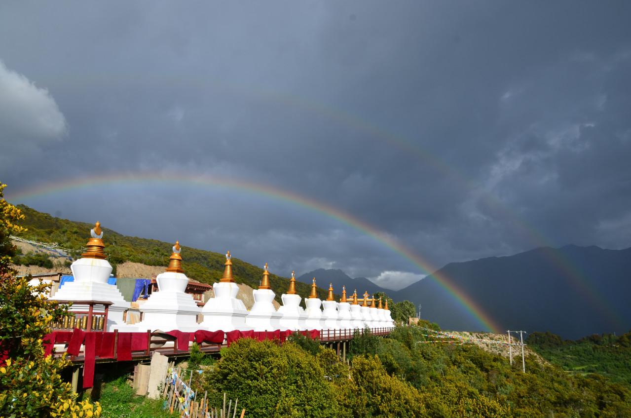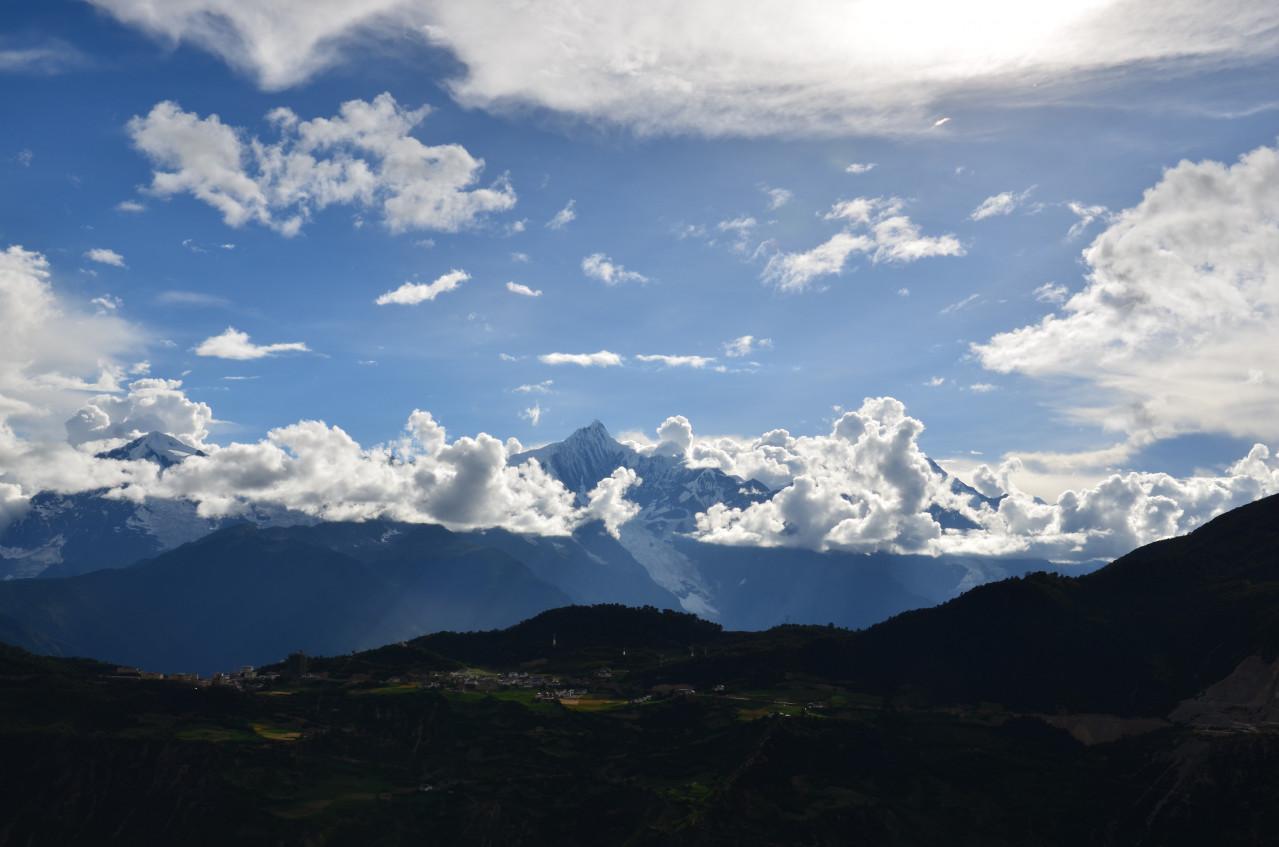 梅里雪山最好的觀景點是飛來寺鎮,那兒的很多賓館都是大落地窗,可以直接在屋裡就可以觀看梅里雪山。梅里雪山是藏區三大神山。還有岡仁波齊和尕朵覺沃,另兩個也已經在2014年和2017年看過。不過,據說近幾年遠觀梅里雪山又多了一個觀景臺,估計就是我拍到雙彩虹有白塔的那個地方。2013年走滇藏線的時候,剛剛修好路,都是板油路,還很好走。看梅里雪山夏天去的話,需要看運氣,經常雲霧繚繞,我們到的當天晚上運氣很好,還看到了夕陽照在梅里雪山上,第二天早晨很遺憾,全都是霧了。不過有點遺憾的是,兩次入藏,均沒有看到南迦巴瓦峰。