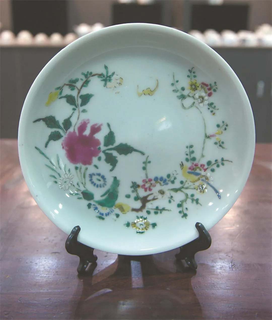 其中,同樣以諧音為表現形式的有“蝠”——“蝙蝠”,古人以“蝙蝠”為瑞獸,是幸福祥瑞的象徵,這多半要歸功於“蝠”是“福”的同音字。在德化窯以“蝠”為素材來表現“福”文化主題並不少見。清代青花盤子,花面常有五“蝠”繞“壽”等圖案。另外,清代五彩花卉盤,翩翩穿飛於花團錦簇間的多為蝙蝠,蝴蝶反而不多見,這一表現手法甚至到了民國依然頗為興盛。