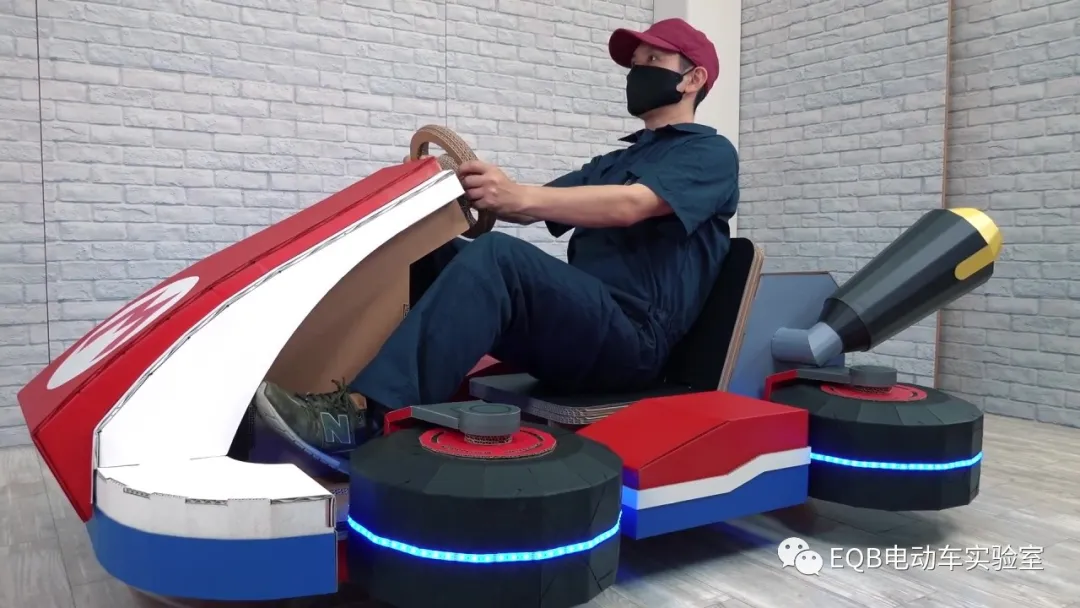 除了博主之外,DanCreator還是一位動手能力超強的藝術家,他使用紙板和一些材料,再和Switch等電子產品搭配來在現實世界中重現了這款遊戲。包括帶有方向盤的街機櫃,以及可行駛的氣墊船。
