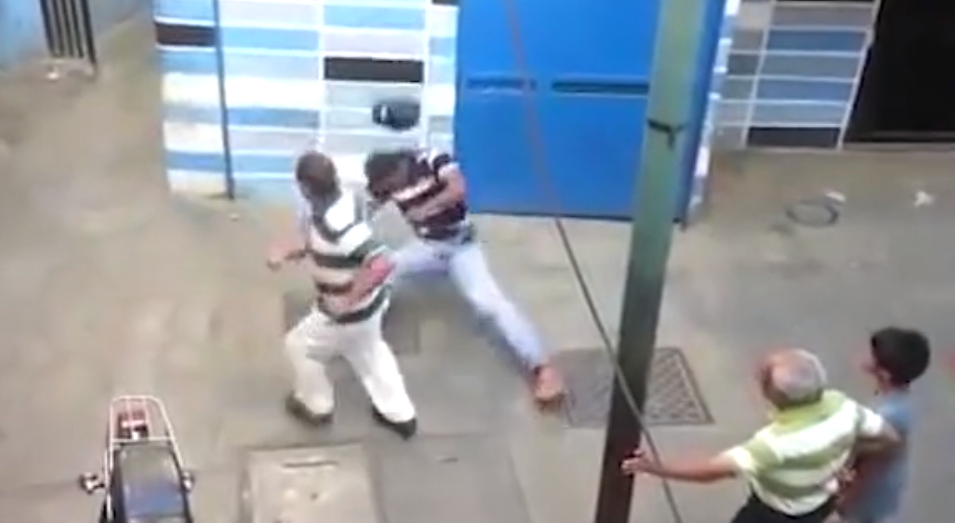 他沒有還手換來的卻又是一拳,已經多年沒有打過拳的他,無奈抱起了拳架。僅一下,流氓就被打的飛起,如被AK47爆頭一般直接倒地。