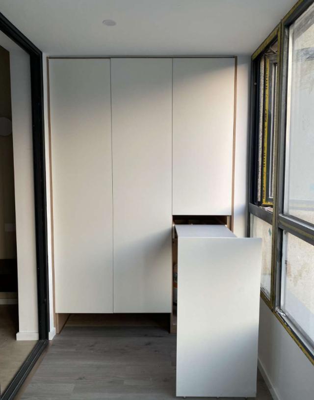 建議大家可以在定製衣櫃的時候將衣櫃側面開一個門,這樣的話拿取衣服就特別方便了,還不會佔空間。