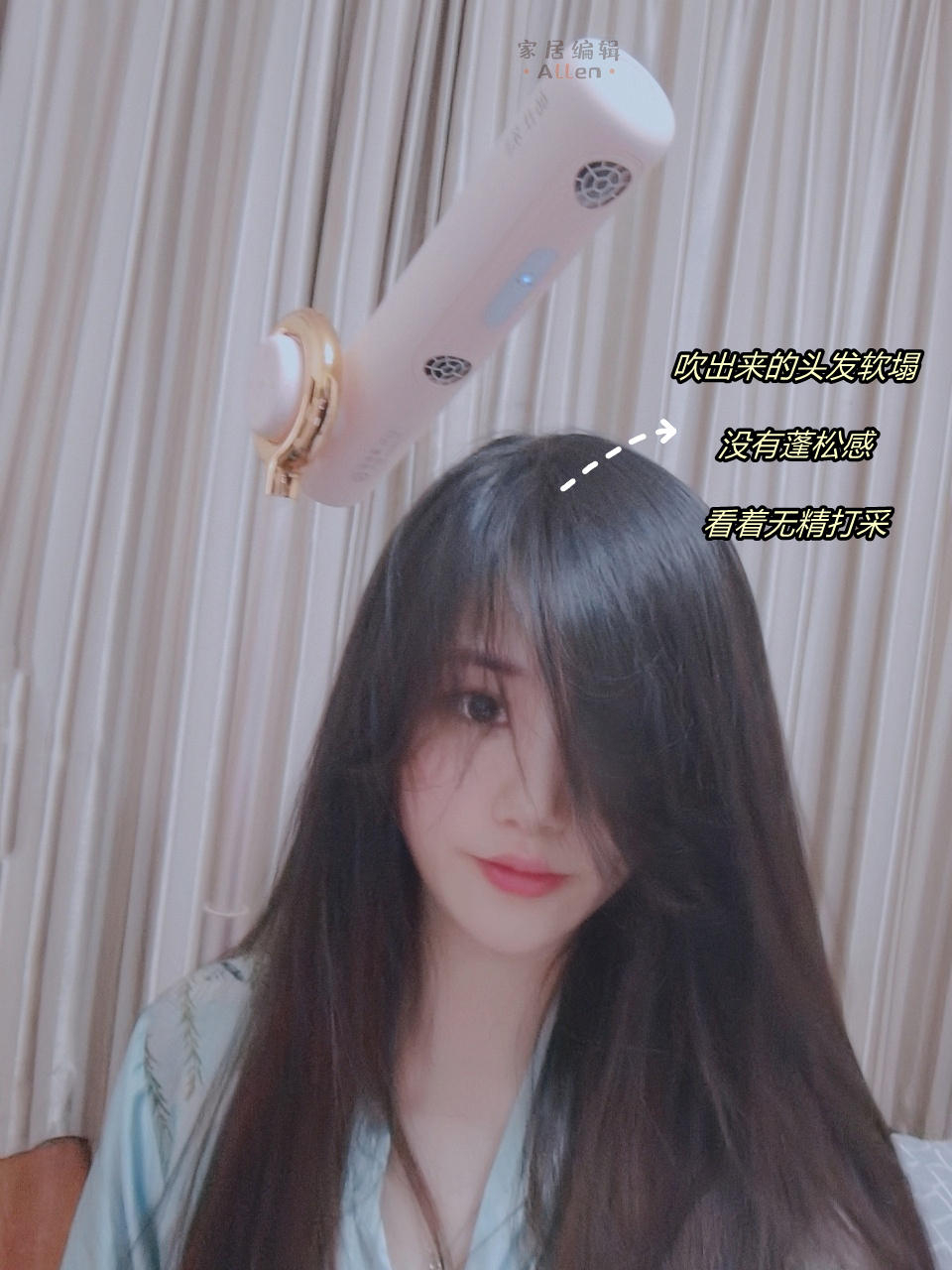 其次,因為只能朝著一個方向吹,大部分頭髮都是“悶乾的”,吹乾後的頭髮軟塌、沒有蓬鬆感、貼著頭皮的感覺,很影響顏值。