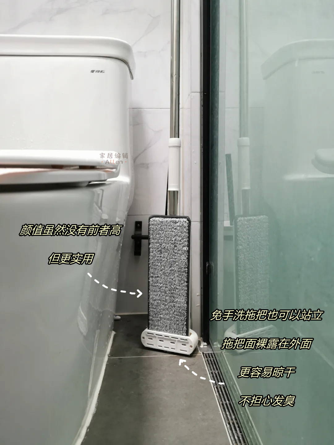 最關鍵的是,不想壁掛的話,它也是可以站立的,開放式的設計,確保了拖把頭可以快速晾乾,不悶臭。