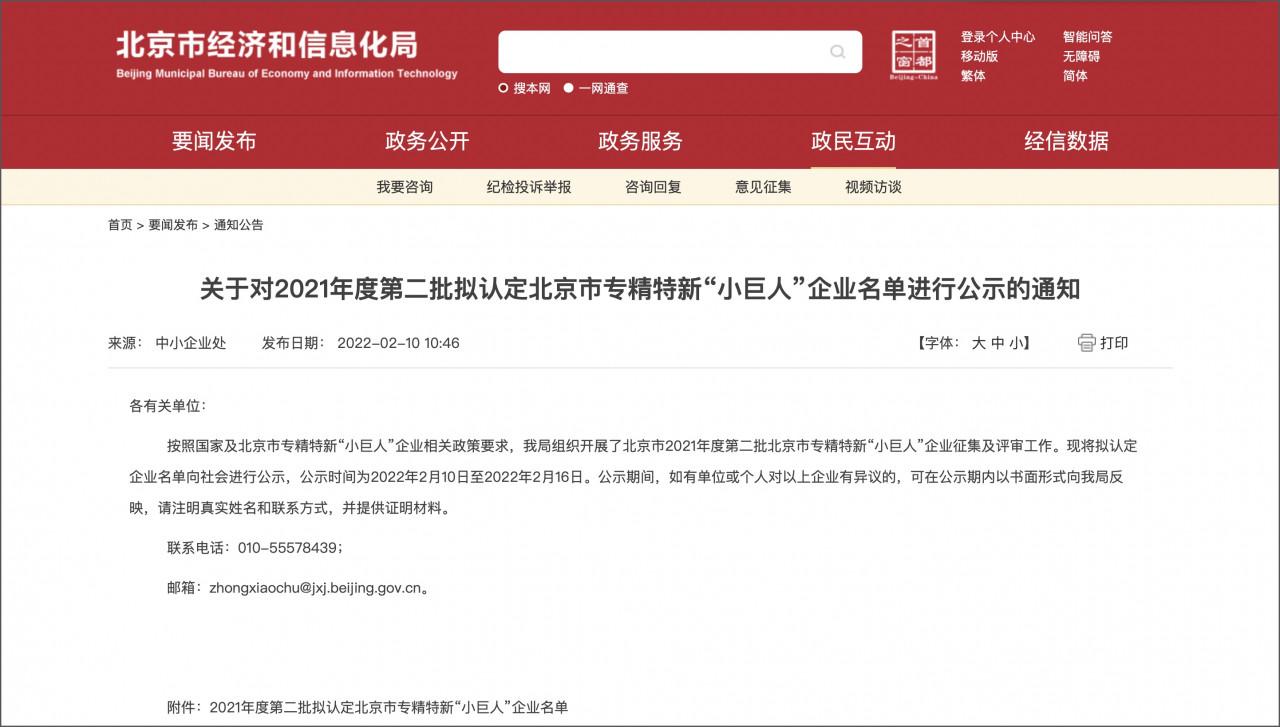 近日,北京市經濟和資訊化局釋出了《關於對2021年度第二批擬認定北京市專精特新“小巨人”企業名單進行公示的通知》,根據國家及北京市專精特新“小巨人”企業相關政策,透過企業徵集及一系列評審工作,西普科技成功入選。
