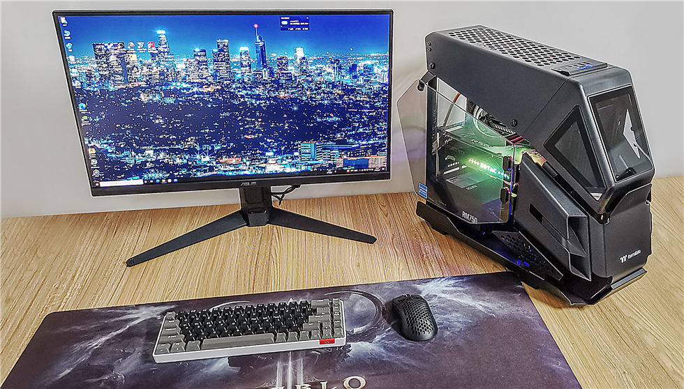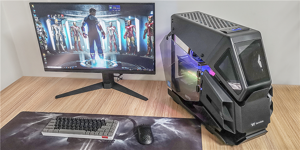 朋友選的是阿帕奇MINI機箱,屬於開放式架構的異形機箱,放在桌面上效果還是很不錯的。