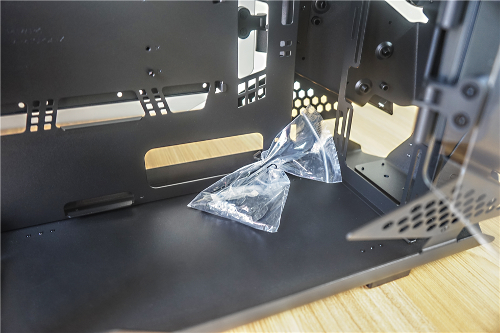 固定螺絲和紮線帶都放在一個小袋裡固定在機箱內部,直接取出來。