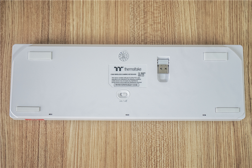 四角有防滑墊設計,背部的獨立開關也是很方便的,專門的凹槽放置著接收器。